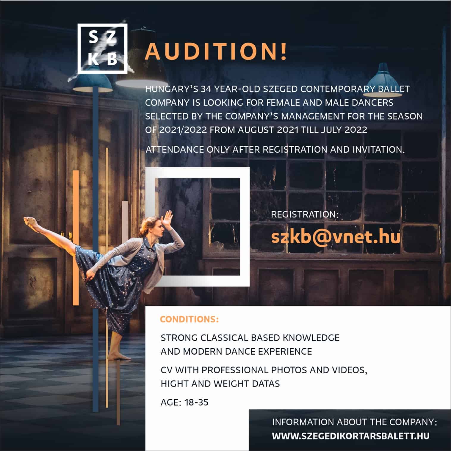 Audition for dancersSzeged Contemporary Dance Company is holding an audition...